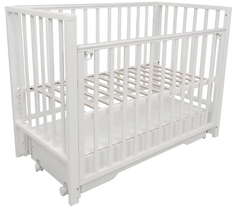 Детская кроватка Indigo Norden универсальный маятник, колесо, ящик белый