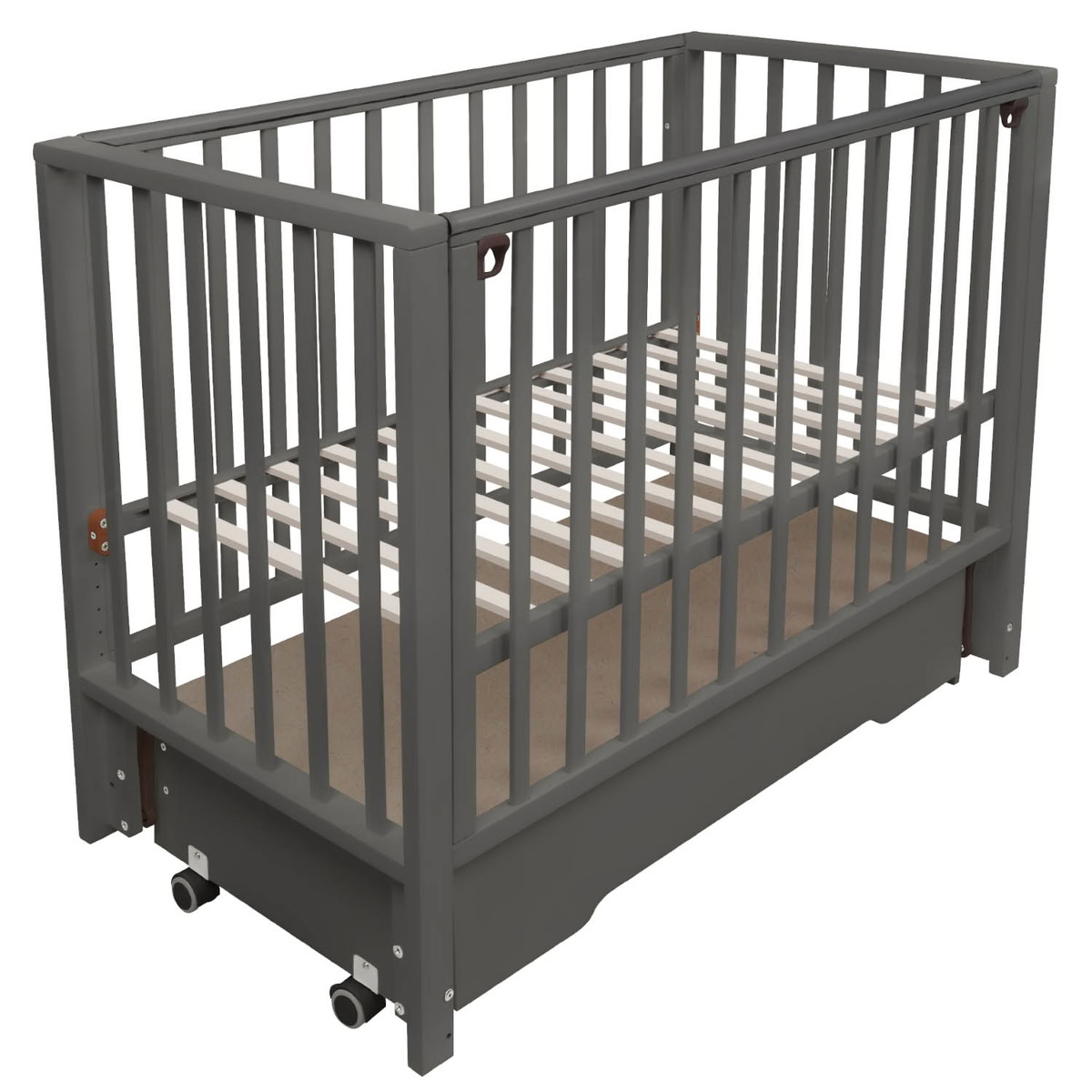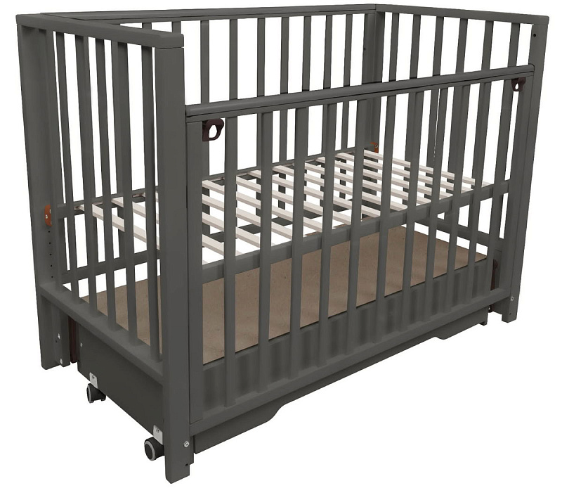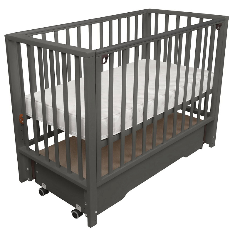Детская кроватка Indigo Norden универсальный маятник, колесо, ящик графит