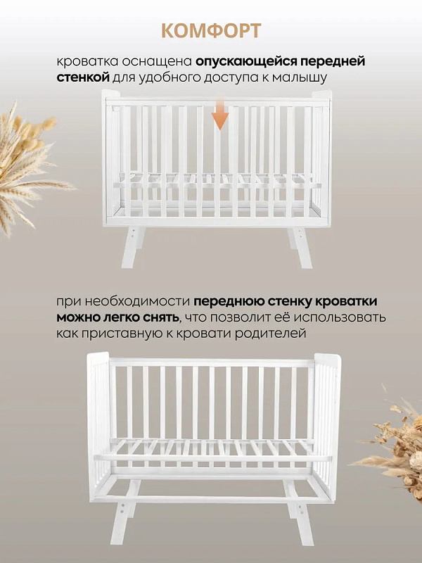 Стильная кроватка в минималистичном дизайне прекрасно впишется в любой интерьер детской комнаты. Выполнена из экологически чистого гипоаллергенного материала - массива березы. Передняя стенка модели при необходимости снимается с считанные секунды. Также на переднем и заднем ограждениях установлены силиконовые накладки, что защитит десны малыша во время прорезывания зубов и позволит сохранить внешний вид кроватки. Кроватка Indigo Style представлена в двух цветовых вариациях: классический белый и белый с элементами из натурального дерева.