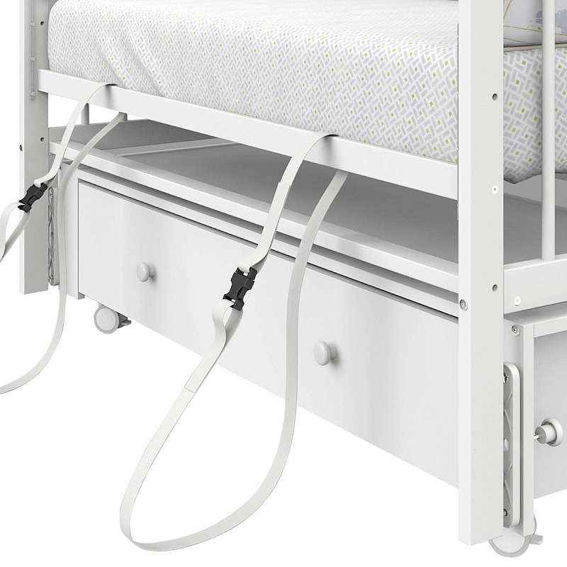Маятниковый механизм с плавным ходом и возможностью фиксации поможет ребенку уснуть, создает ощущения уюта и безопасности. Реечное дно и боковины поддерживают оптимальную вентиляцию и создают комфортный микроклимат для сна. Защитные накладки «Антигрыз» оберегают ребёнка в период прорезывания зубов.