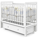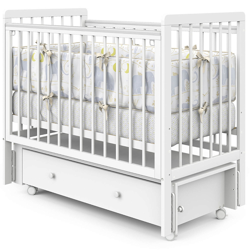 Детская кроватка Indigo Vista продольный маятник, колеса,ящик белая аляска