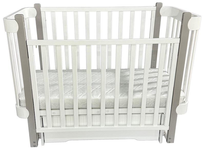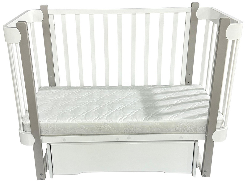 Детская кроватка Кедр Adele 2 поперечный маятник c ящиком белый/серый