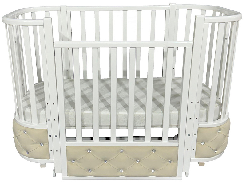 Детская кроватка Кедр Estelle Elegance 4 поперечный маятник велюр белый/белый