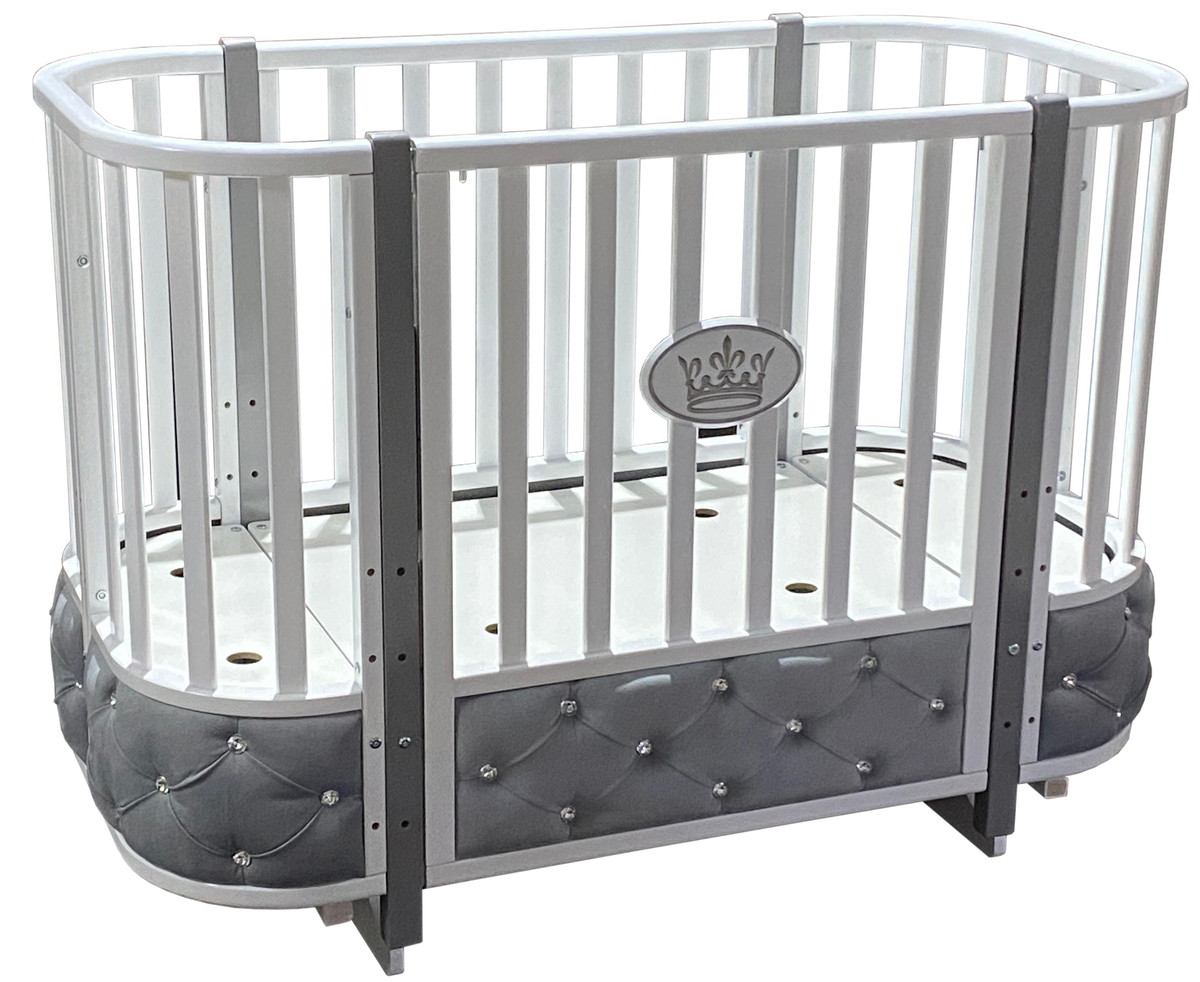 Детская кроватка Кедр Estelle Elegance 4 поперечный маятник велюр белый/серый