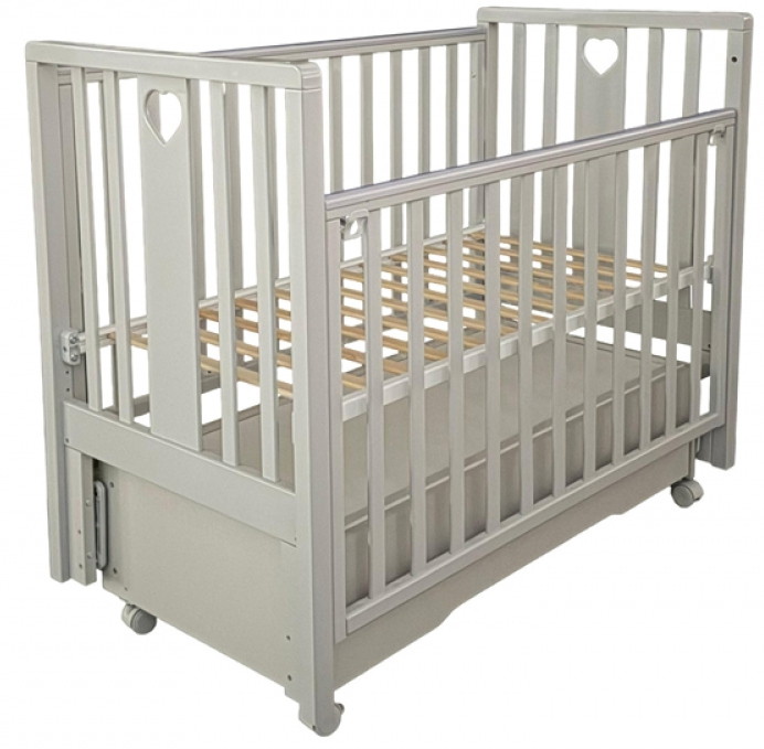Реечное ложе с двумя уровнями высоты растёт вместе с ребёнком, обеспечивая комфорт и безопасность на каждом этапе развития. Съемная передняя стенка с двумя положениями позволяет легко укладывать и доставать малыша, бережно охраняя его сон.