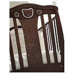 - Колеса в случае необходимости легко и быстро снимаются, таким образом, кроватка трансформируется в качалку – имеются специальные полозья для качания.