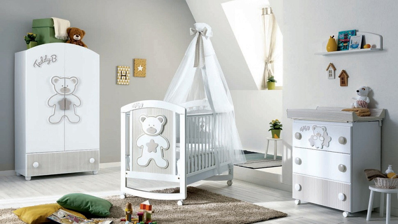 Кровать для ребенка с рождения до 5 лет Pali Teddy B выпущена итальянским, оснащена качалкой на дуге. Стиль современый, кровать безопасная за счет отсутствия углов и плавности очертаний. С торца модель украшает интересный рисунок.