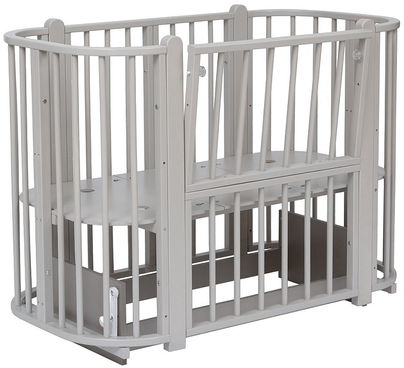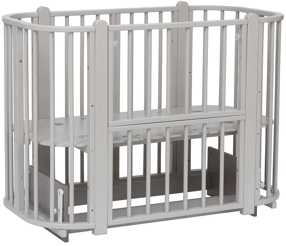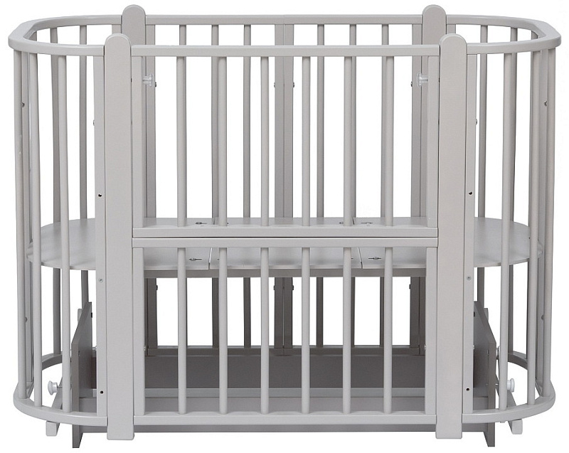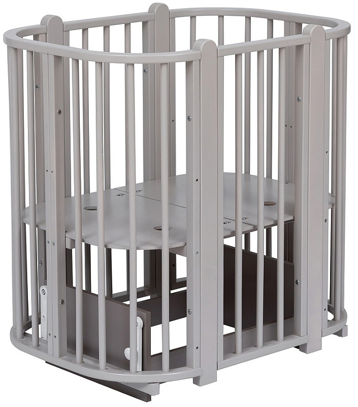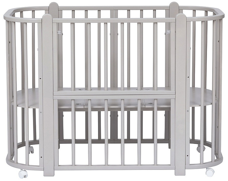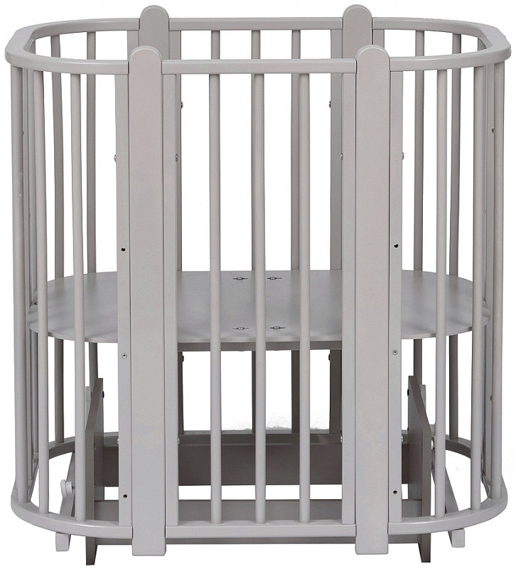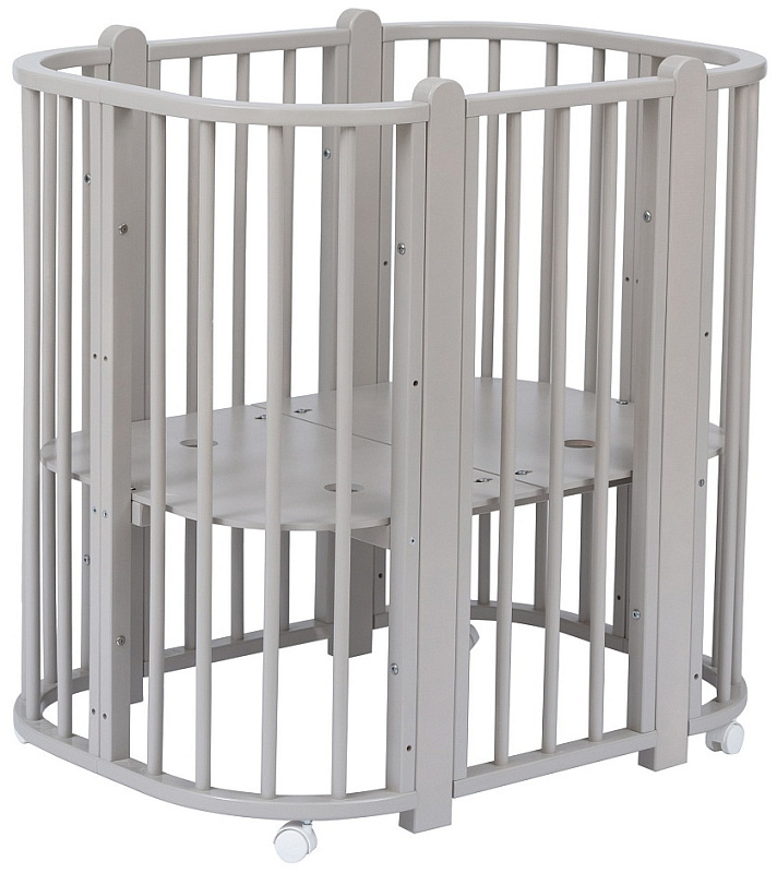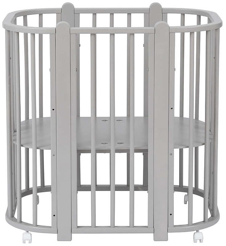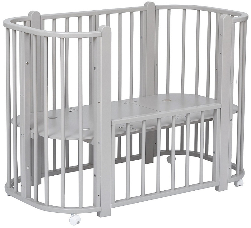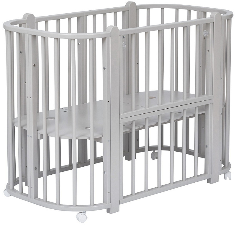 Современная кроватка необычной овальной формы для ребенка с рождения до 3 лет. Уже доказано, что ребенок в первые месяцы после рождения лучше спит в небольшом ограниченном пространстве, там более уютно и спокойно. В этот период рекомендуем использовать колыбель. В дальнейшем кроватка трансформируется в полноценную овальную кроватку с закругленными углами. У кроватки простой, но очень красивый внешний вид. Она полностью безопасна для ребенка и не имеет острых углов. В комплекте с кроваткой идут колёса для удобного перемещения по комнате. Кроватка проходит в стандартный дверной проём.