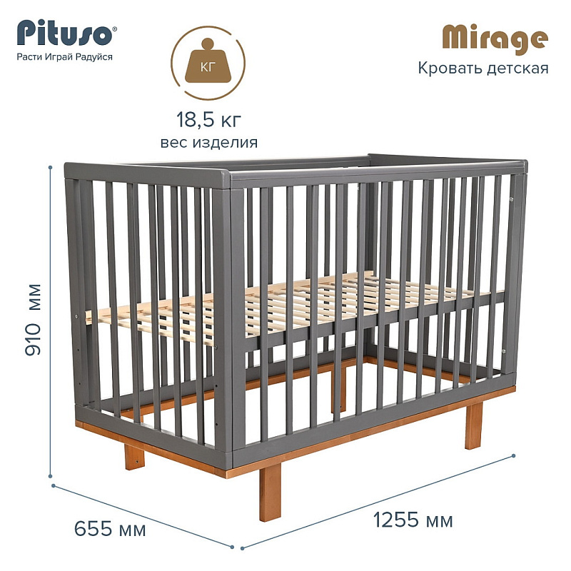 Детская кроватка Pituso Mirage съемная стенка Графит-бук