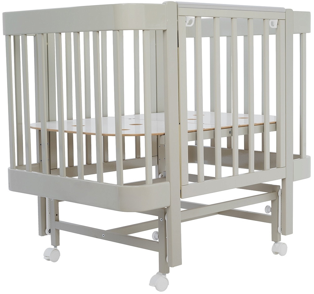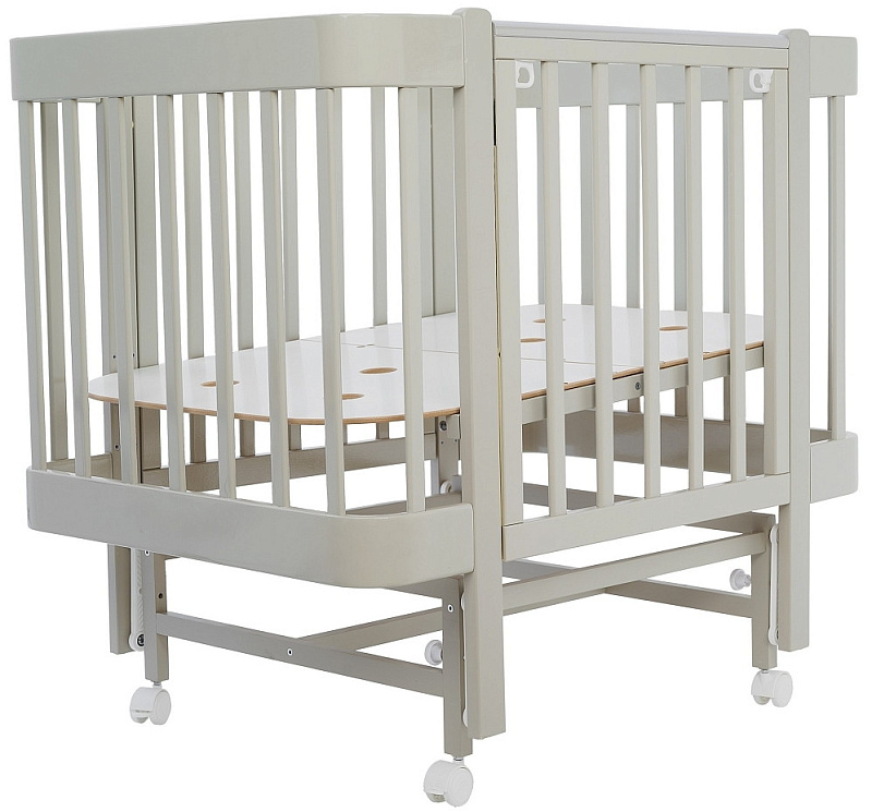 Ложе кроватки Pituso Mirelle выполнено из вентилируемого МДФ и имеет наклонное дно, которое можно регулировать в трех уровнях. Это позволяет подобрать оптимальную высоту, соответствующую возрасту ребенка и вашим предпочтениям. Например, на самом высоком уровне (53,5 см с колесами и на маятнике) удобно доставать малыша, а на самом низком (40,5 см) обеспечивается максимальная безопасность, когда ребенок начинает активно двигаться.