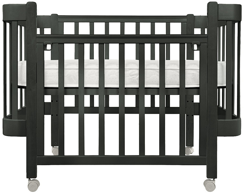 Передняя авто-стенка с возможностью полного снятия за считаные секунды, для удобного доступа к младенцу. Благодаря съемной авто-стенке, можно приставлять к родительской кровати. Фастексы с ремешками, можно кроватку сцепить с родительской кроватью