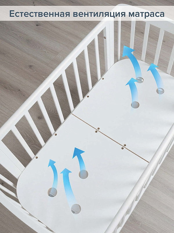 Дно кроватки с отверстиями, которые обеспечивают естественную вентиляцию матраса.