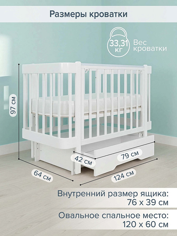 Маятник. Кроватку можно установить на продольный маятник. Специальная функция укачивания успокоит малыша перед сном и создаст бесшумные плавные движения, похожие на ручное качание.