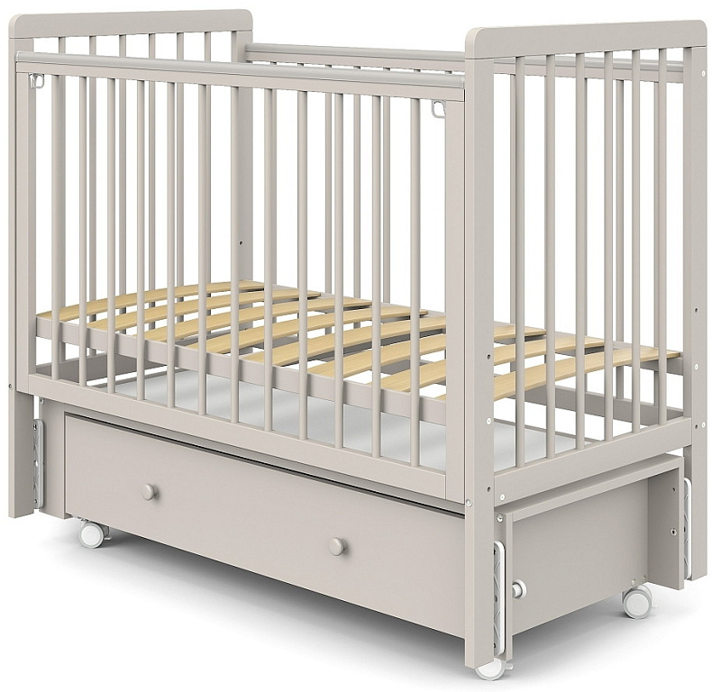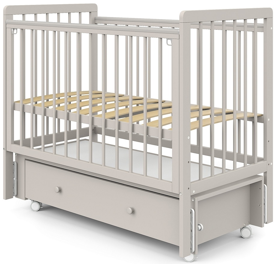 Маятниковый механизм с плавным ходом и возможностью фиксации поможет ребенку уснуть, создает ощущения уюта и безопасности. Реечное дно и боковины поддерживают оптимальную вентиляцию и создают комфортный микроклимат для сна. Защитные накладки «Антигрыз» оберегают ребёнка в период прорезывания зубов.