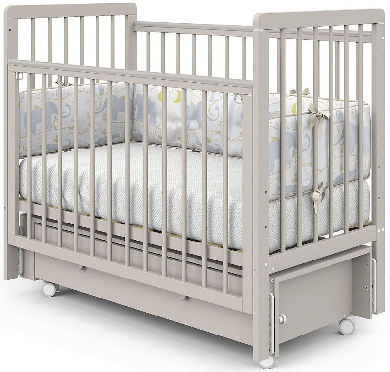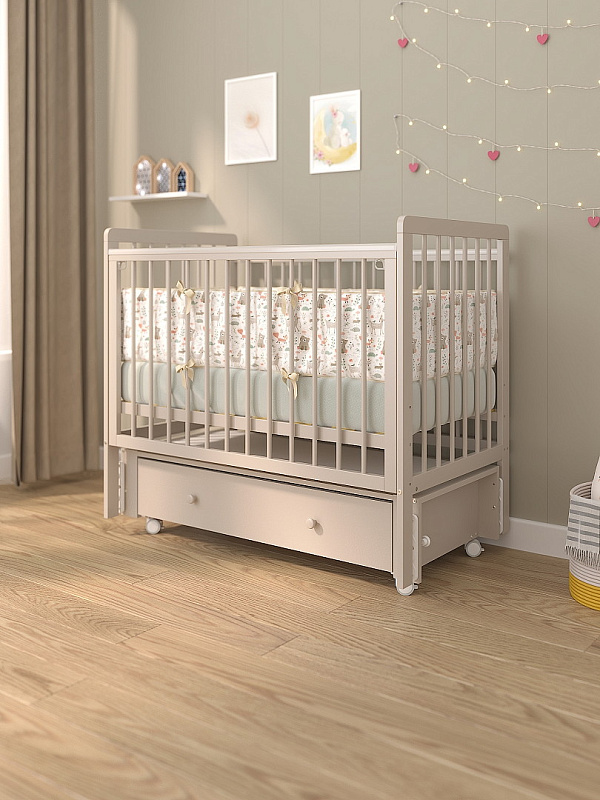 Детская кроватка Pituso Tiny продольный маятник, колеса,ящик Кашемир