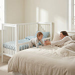 Функция приставной кровати: В комплекте идут два фиксирующих ремня с фастексами, чтобы вы могли безопасно приставить кроватку к своей кровати.