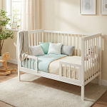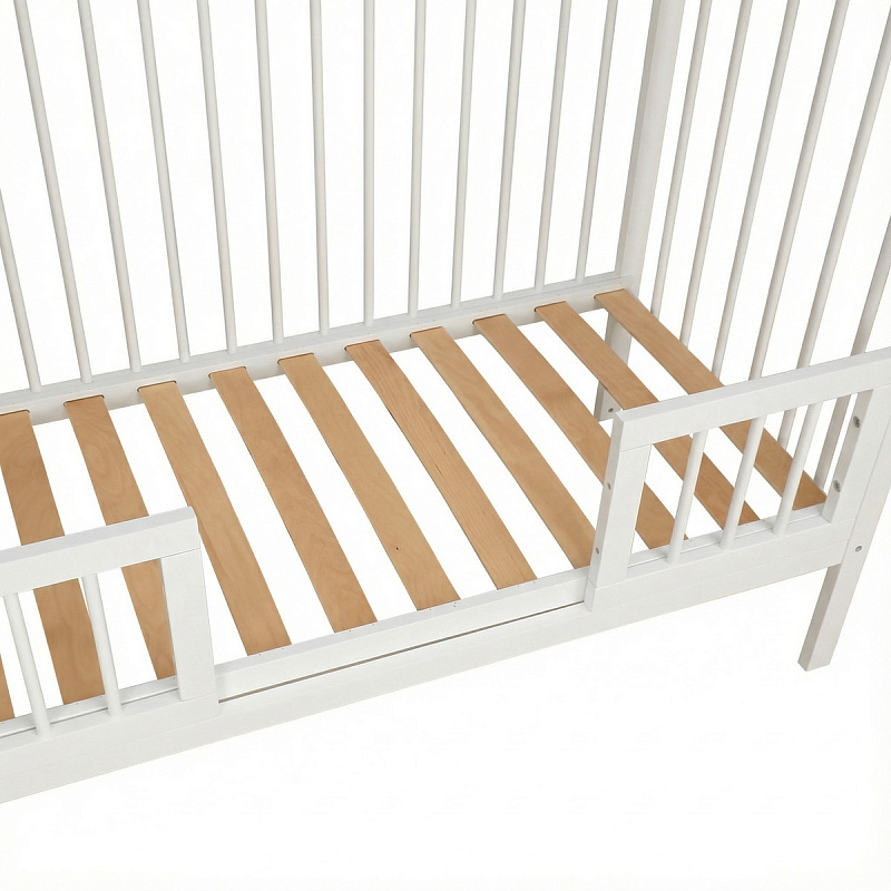 Качество и стиль: Изготовлена из массива берёзы. Съёмная боковая стенка облегчает уход и доступ к ребёнку, а цветовые акценты на спинках добавляют модели современный вид.