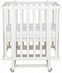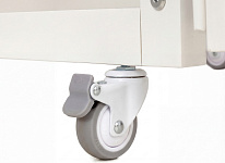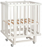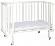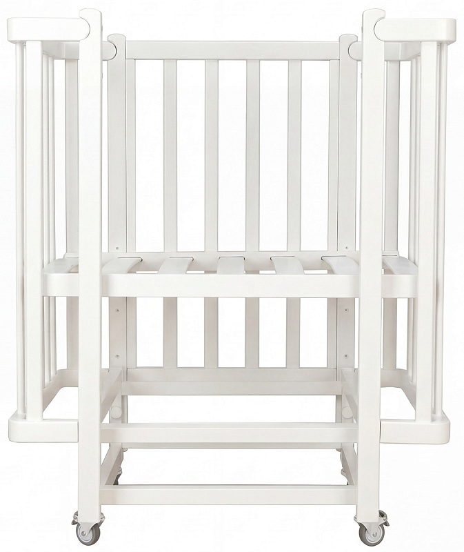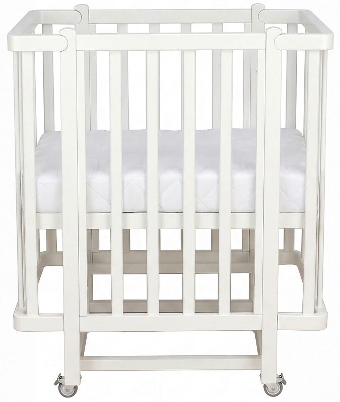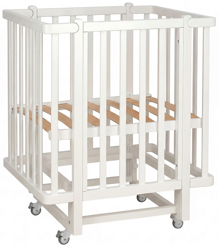 4 высокопрочных колеса со стопорами, которые обеспечивают максимально бесшумное скольжение и придают устойчивость на любой поверхности. Кроватка на колесах с фиксатором.