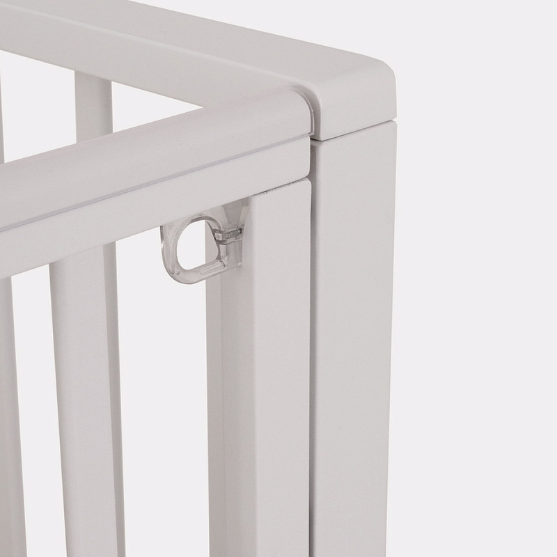 - верхние планки боковых стенок дополнены силиконовыми накладками, чтобы малыш не повредил десна (во время прорезывания зубов) и поверхность кроватки