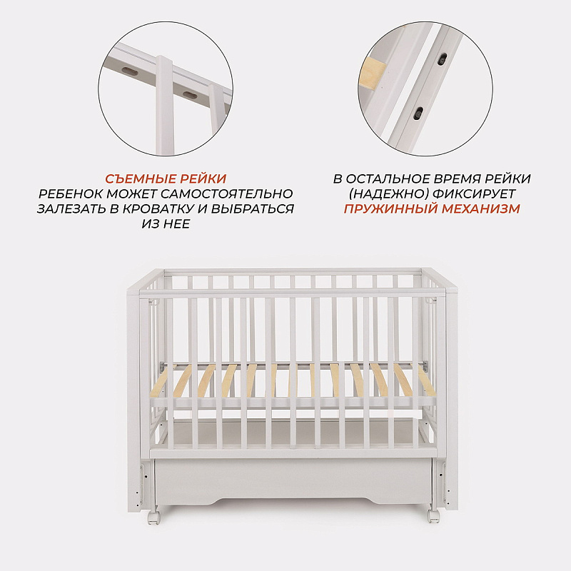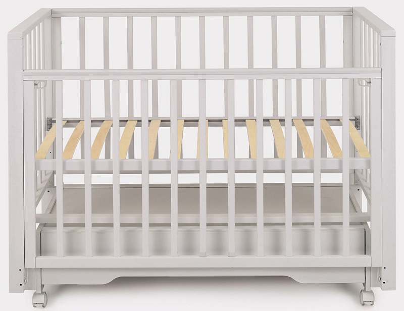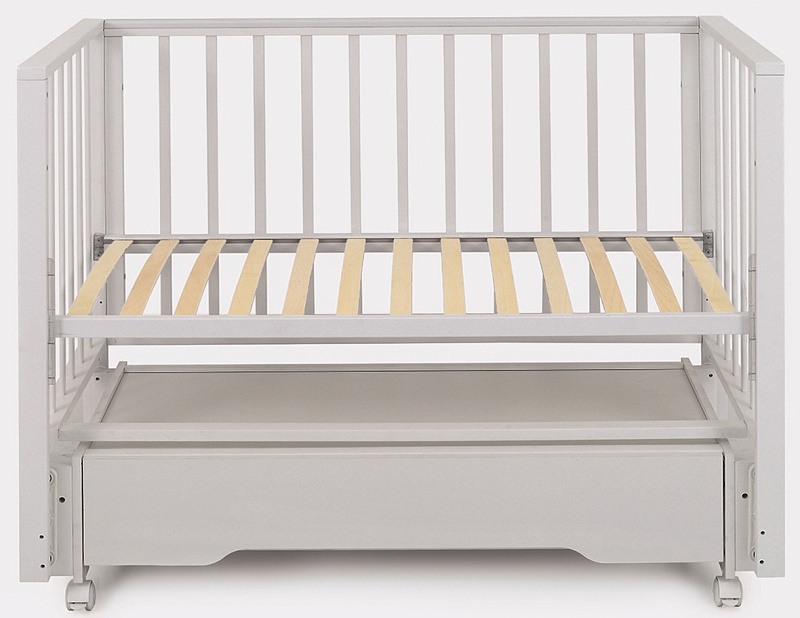 - чтобы подросший ребенок мог самостоятельно залезть в кроватку и выбраться из нее, из боковой стенки можно вынуть две рейки