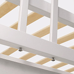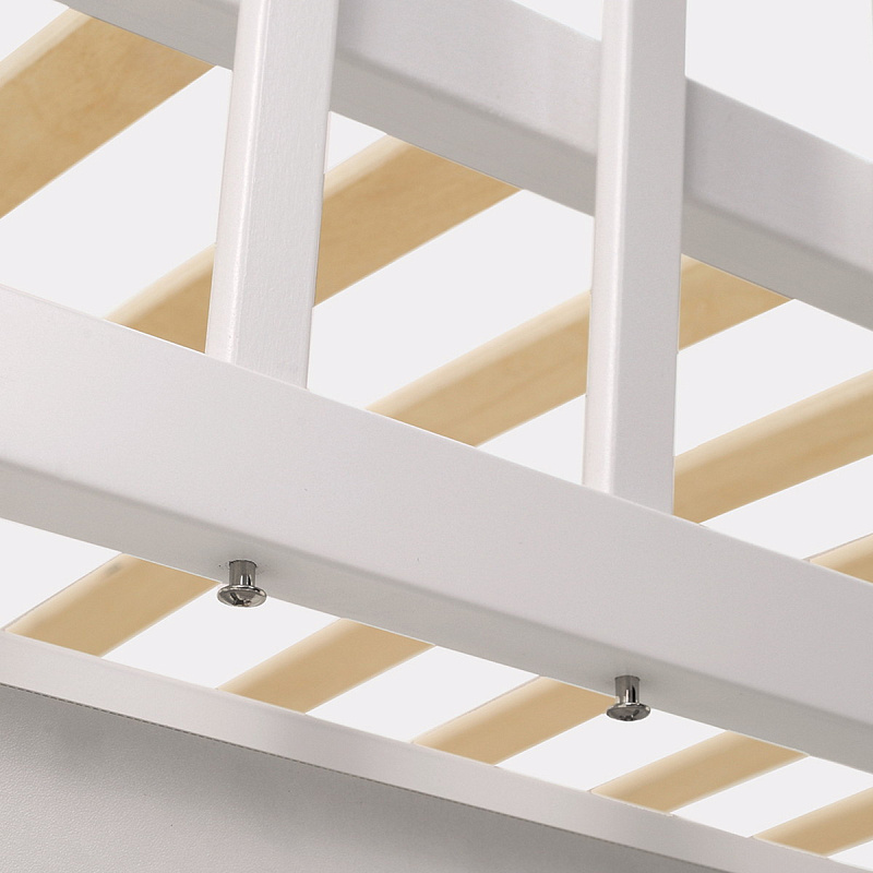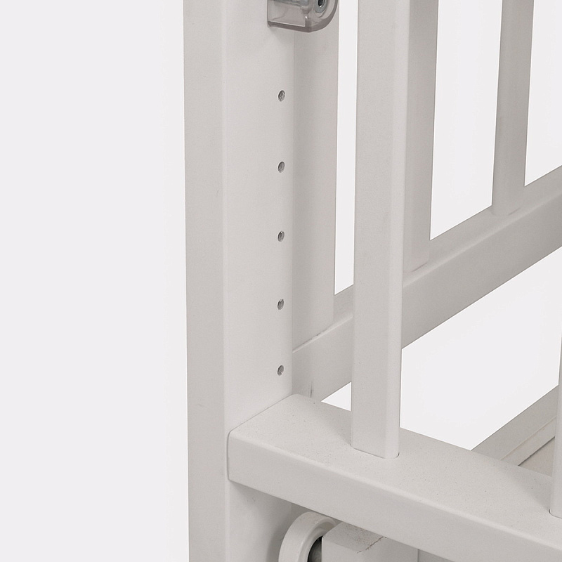 - съемную боковую стенку удобно опускать нажатием двух кнопок (курковой механизм). Также ее вовсе можно снять и, например, придвинуть к кровати родителей, чтобы обеспечить спокойный сон маме и малышу. Когда кроха вырастет, боковая стенка снимается - кровать превращается в уютный диванчик.