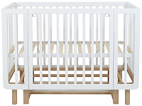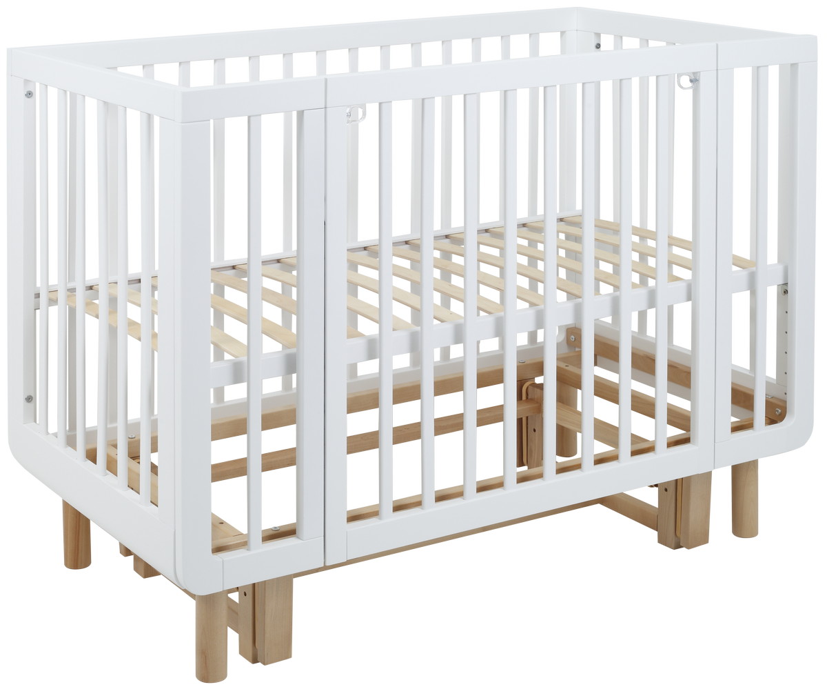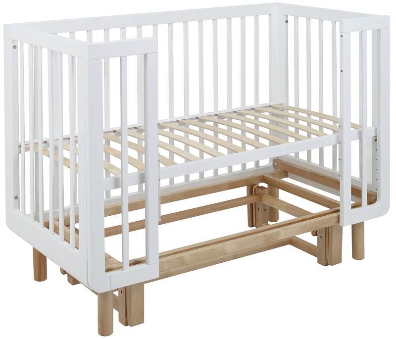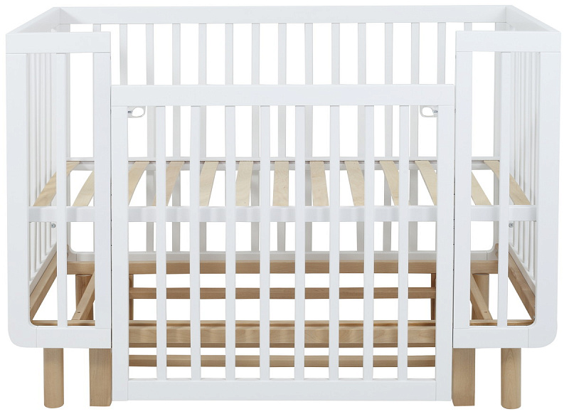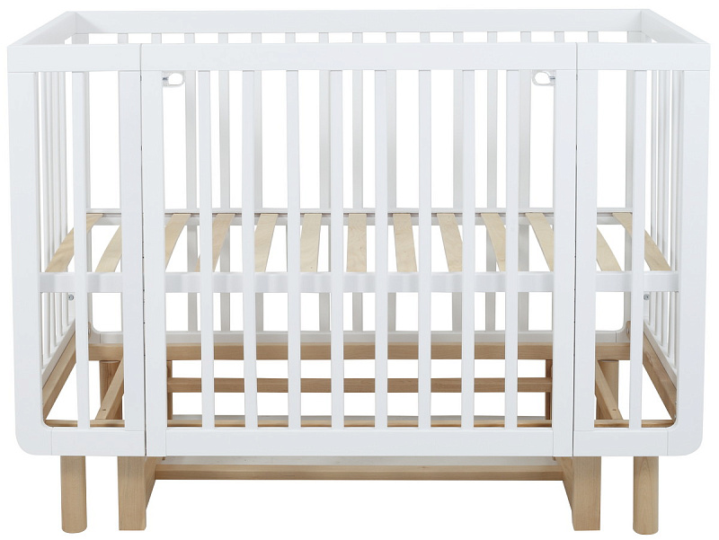 также благодаря съемному боковому ограждению подросший малыш сможет самостоятельно забираться в кроватку или покидать ее