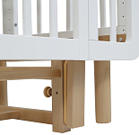 кроватка дополнена универсальным маятником (продольное или поперечное качание, но можно и вовсе без него) для комфортного и естественного укачивания малыша