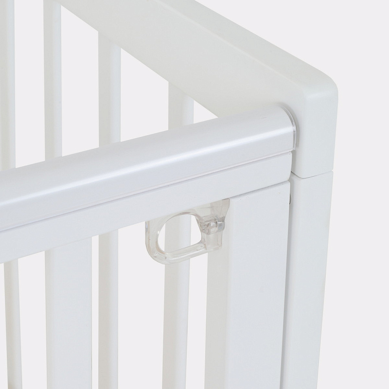 верхние планки дополнены силиконовыми накладками, чтобы ребенок не повредил нежные десны и поверхность кроватки;