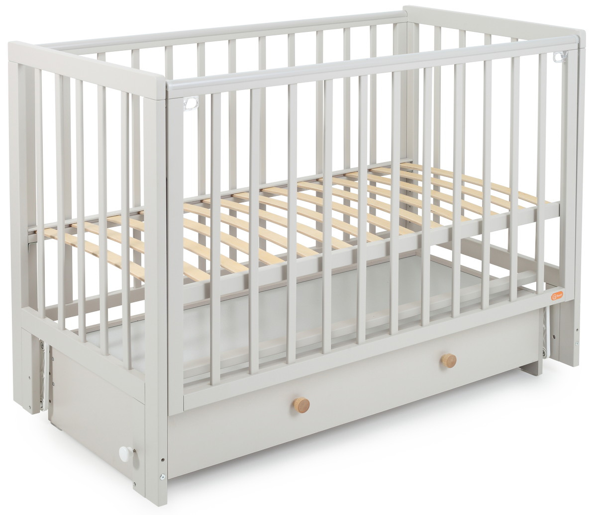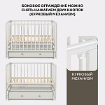 чтобы обеспечить спокойный сон маме и малышу, боковое ограждение можно легко снять нажатием двух кнопок (курковой механизм) и придвинуть кроватку к кровати родителей, а когда кроха подрастет кроватка превращается в уютный диванчик;