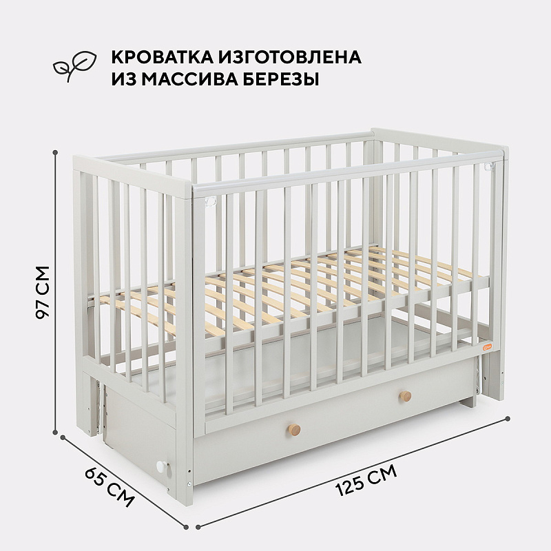 основа кроватки, изготовленная из массива березы, обеспечит надежную устойчивость.