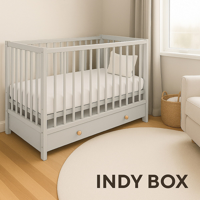 Детская кроватка Rant Indy Box, выполненная в стиле экоминимализм, не только станет вашим верным помощником, но и наполнит комнату легкостью. Функциональная модель дополнена универсальным маятником, силиконовыми накладками, 5 положениями ложа, объемным закрытым ящиком для белья с деревянными ручками