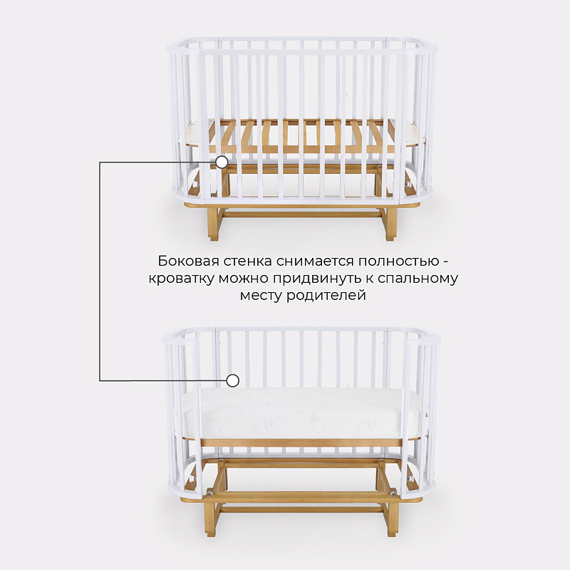 - боковая стенка снимается полностью - кроватку можно придвинуть вплотную к спальному месту родителей