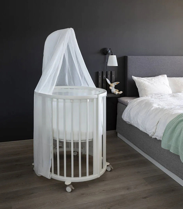 Мягкий овальный дизайн обволакивает вашего ребенка, обеспечивая комфорт и привычную обстановку для спокойного сна и самых сладких снов. Карниз и балдахин делают ее поистине элегантным дополнением к любой детской комнате. Поворотные колесики с фиксаторами можно использовать для мягкого укачивания малыша, а также для удобного перемещения кроватки из комнаты в комнату. При ширине всего 67 см / 26,4 дюйма она удивительно компактна, что делает ее идеальной для небольших детских комнат.