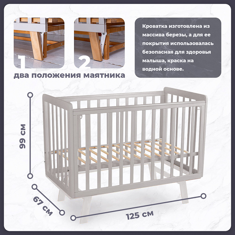 - Рейки и ламели кроватки изготовлены из натуральной березы.