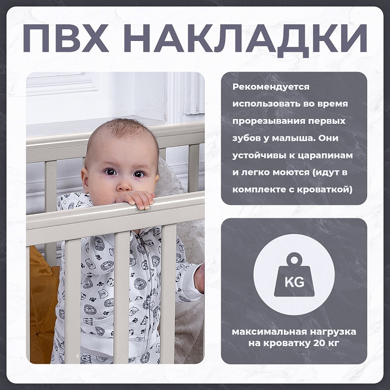 - Стенки и дно кроватки - реечные, что создает естественную вентиляцию матраса и спального места и способствует отведению влаги