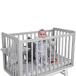 - Благодаря конструкции кроватки малыш всегда в поле зрения мамы.