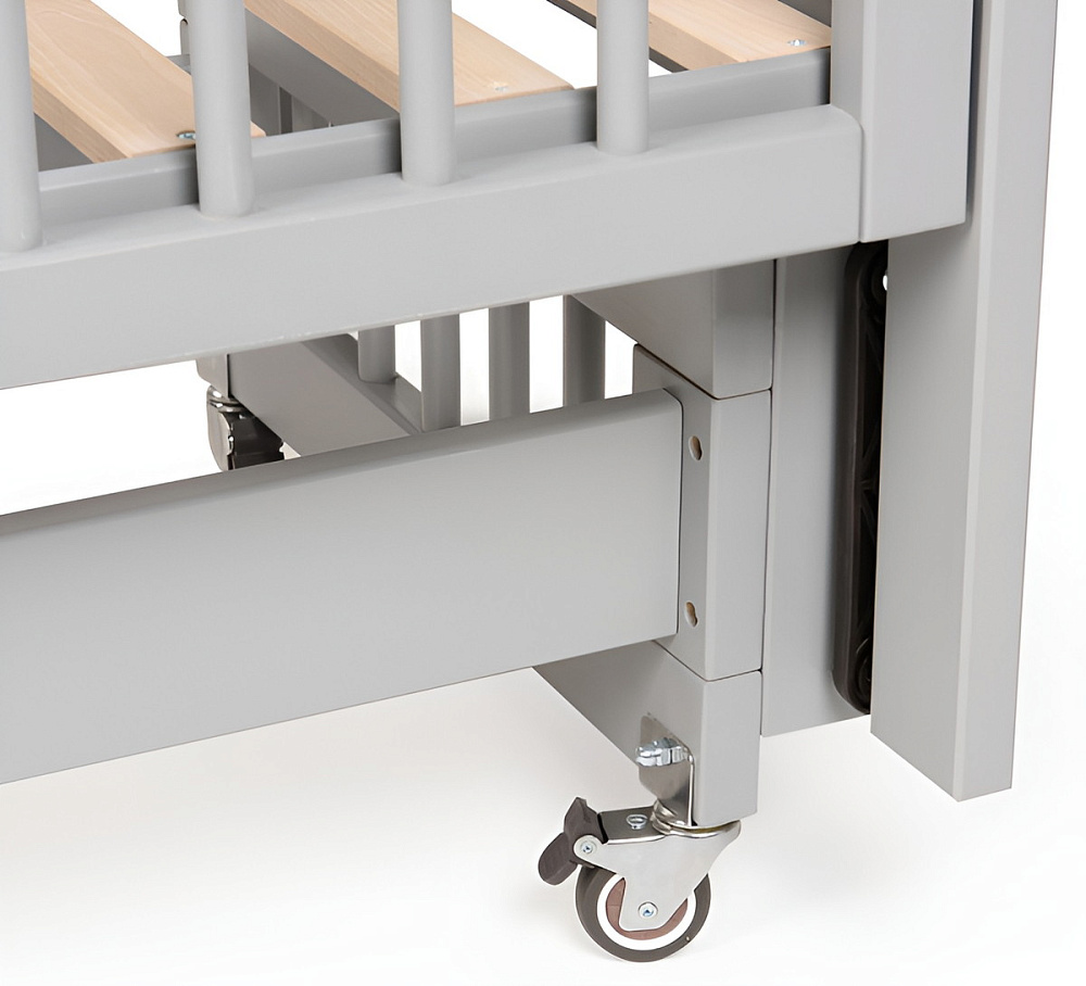 Данная кровать имеет все необходимые функции для удобства родителей, такие как тихий универсальный маятниковый механизм из массива лиственных пород дерева(ольха), для безопасного укачивания ребенка, который можно зафиксировать при необходимости. Ложе кроватки имеет три положения по высоте. Регулируемую переднюю стенку (три положения) с возможностью полного снятия за считаные секунды, для удобного доступа к младенцу. Так же на модели кроватки Tutis Nature предусмотрены резиновые бесшумные колесики с тормозом (на всех 4х колесах) на металлической скобе для удобства перемещения по вашему дому, колеса проверены на излом и гарантируют долгую службу, соответствуют всем необходимым нормам безопасности. Кроватка имеет круглые ламели по периметру для удобного хвата малыша. На передней спинке есть 4 съемные ламельки -для создания лаза для подросшего ребенка. Бортики кровати имеют накладки, которые будут актуальны при прорезывании зубов. Кровать выполнена полностью из массива ольхи и покрыта премиальной акриловой эмалью на водной основе производства Helios (HIDROHEL ECO). Tutis уделяет большое внимание правильному развитию малыша работая в сотрудничестве с учеными и педиатрами! Мы постарались совместить все полезное, безопасное, и удобное в своем новом натуральном продукте Tutis Nature.