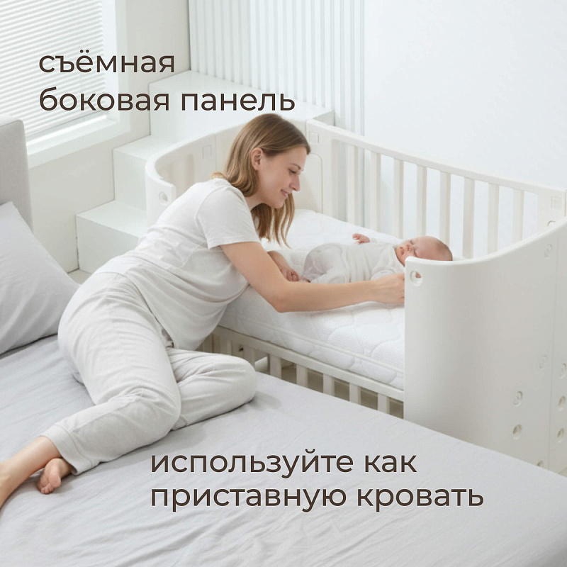 Особое внимание уделено конструкции изделия: съемная боковая панель позволяет легко преобразовать кроватку в приставную кровать, создавая дополнительные удобства для совместного сна мамы и младенца. Габариты кроватки для детей составляют 123 х 68 х 92 см, обеспечивая достаточное пространство для размещения даже в небольших помещениях. Размер спального места оптимален для полноценного отдыха ребенка и составляет 117 х 63 см, выдерживая максимальную нагрузку до 50 кг.