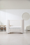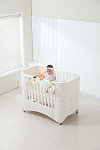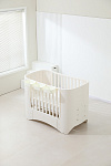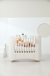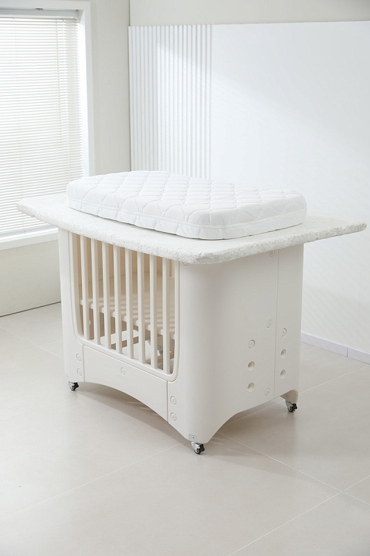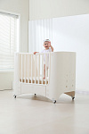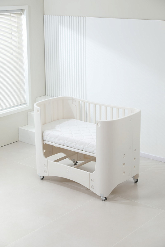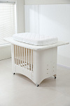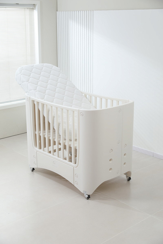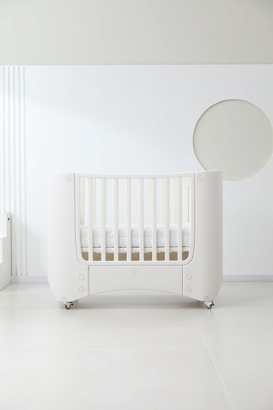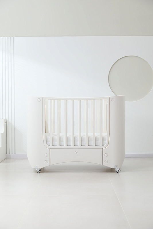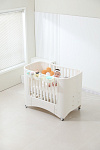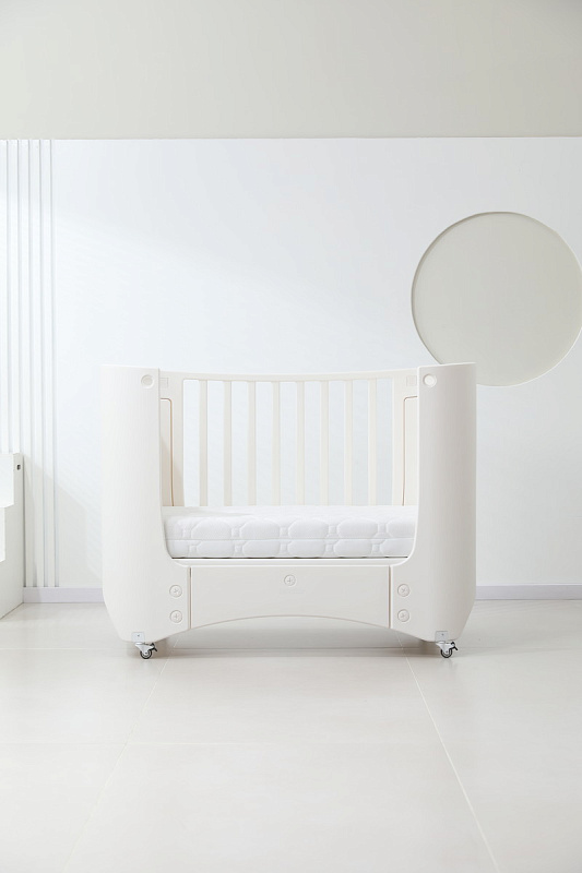 В комплекте с кроватью на колесиках идет двусторонний матрас средней жесткости, обеспечивающий правильную поддержку позвоночника малыша.