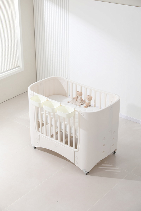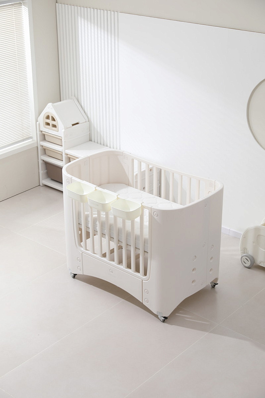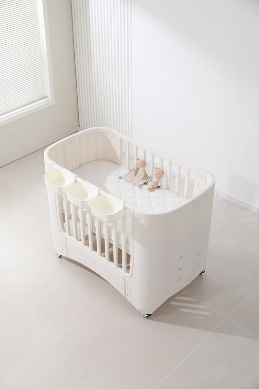 Материалы изготовления детской кровати с матрасом отвечают высоким стандартам качества: используется пищевой пластик, гарантирующий отсутствие вредных веществ и идеально подходящий для контакта с младенцем. Округлые формы и сглаженные углы исключают риск травмирования малыша.