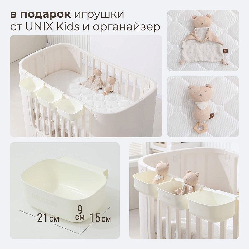 Кровать детская для новорожденных UNIX Kids Premium - функциональная и эстетичная мебель для обустройства комфортного пространства малыша. Выполненная в изысканном белом цвете, данная модель отличается продуманностью каждой детали, обеспечивая безопасность ребенка и удобство для родителей.