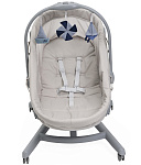 Колыбель-стульчик Chicco Baby Hug ProКогда придёт время первого прикорма, переведите спинку колыбели Chicco Baby Hug Pro в вертикальное положение и установите столик (в комплектацию не входит, приобретается отдельно). Он легко фиксируется на сиденье, выполнен из прочного пластика и не подвержен сколам и царапинам. Высокие бортики не дадут еде и напиткам попасть на пол. Специальное углубление для бутылочки позволяет расположить на столе любимые напитки малыша.