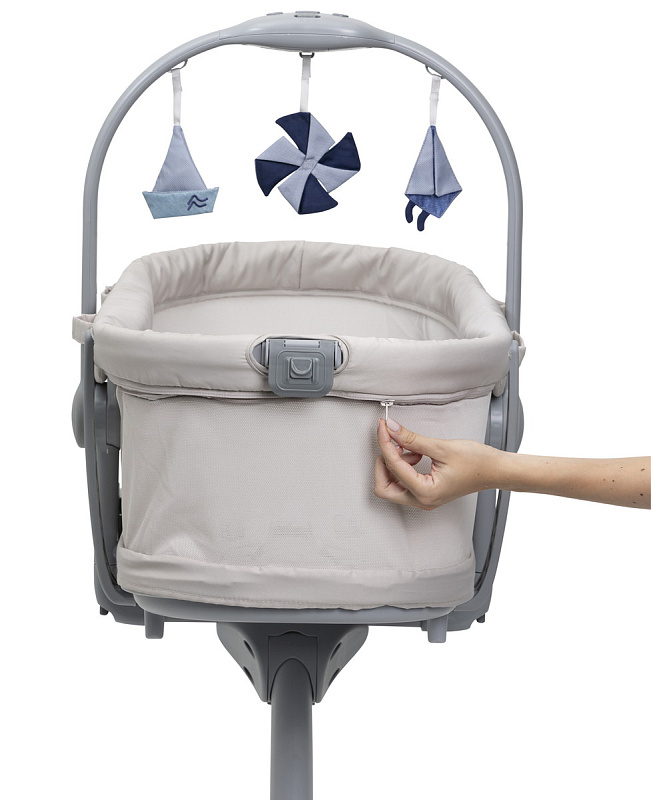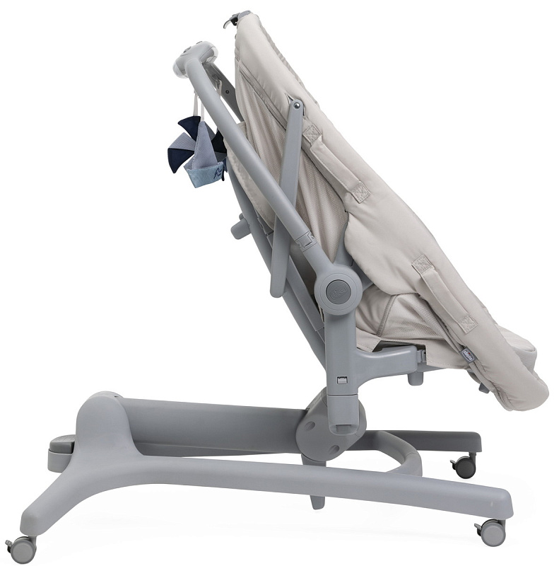Колыбель-стульчик Chicco Baby Hug ProУютная колыбель Baby Hug Pro идеально подходит для сна новорожденного. Поставьте её рядом со своей кроватью, чтобы малыш всегда был с вами. Благодаря колесикам, вы сможете покачивать её вперед-назад, чтобы убаюкать кроху. Сетчатые боковины позволяют воздуху свободно циркулировать вокруг ребёнка, создавая комфортный микроклимат внутри колыбели. Высоту люльки легко регулировать. Нажмите на педаль и опустите на нужный вам уровень. Таким образом вы легко сможете настроить положение колыбели, чтобы вам было удобно успокоить малыша, не вставая с кровати ночью.