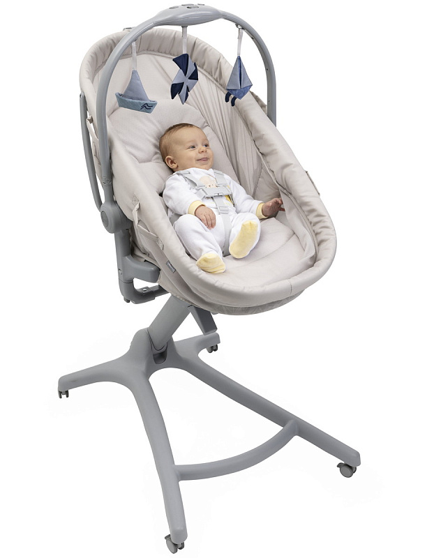 Настоящая находка для занятых родителей Chicco Baby Hug Pro – это не просто кроватка для вашего малыша. Целых пять функциональных предметов: колыбель, переносная люлька, детский шезлонг, стульчик для кормления и кресло для подросших детей. Маневренные колеса позволяют перемещать колыбель Baby Hug Pro по квартире, а качественные материалы рамы и приятные ткани обивки делают её использование настоящим наслаждением!