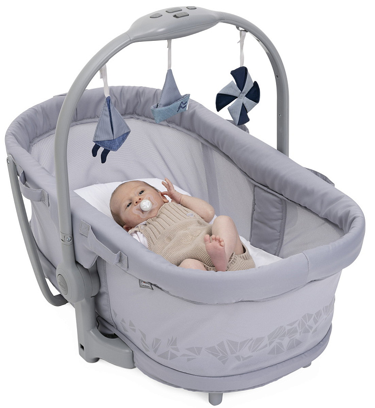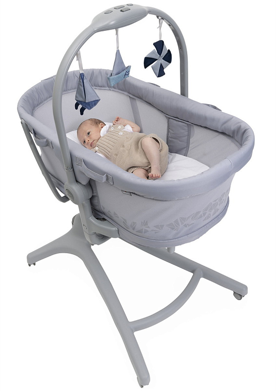Настоящая находка для занятых родителей Chicco Baby Hug Pro – это не просто кроватка для вашего малыша. Целых пять функциональных предметов: колыбель, переносная люлька, детский шезлонг, стульчик для кормления и кресло для подросших детей. Маневренные колеса позволяют перемещать колыбель Baby Hug Pro по квартире, а качественные материалы рамы и приятные ткани обивки делают её использование настоящим наслаждением!