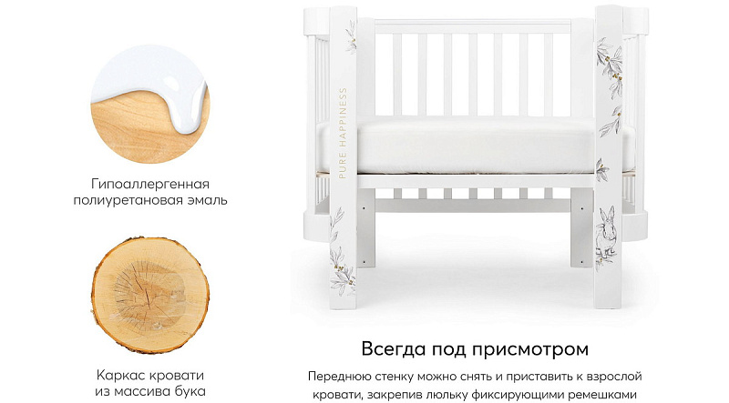 - Бортики стенок со специальными накладками для защиты малыша в период прорезывания зубов