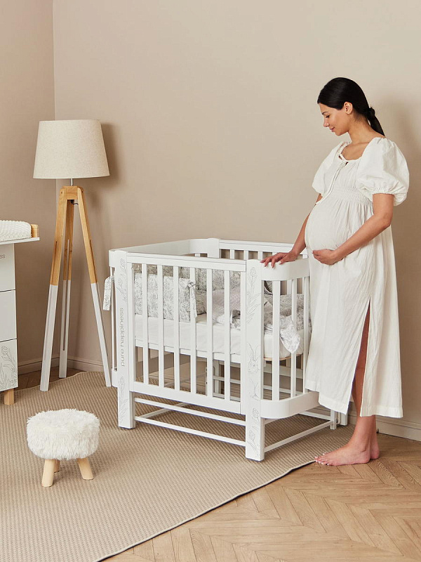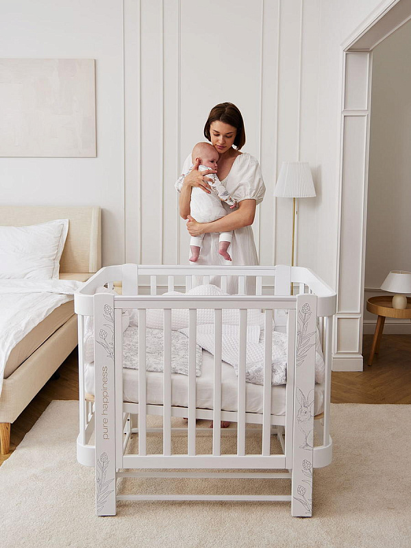 Детская кроватка-трансформер Happy baby Mommy Love в комплекте с расширением 160х70 white