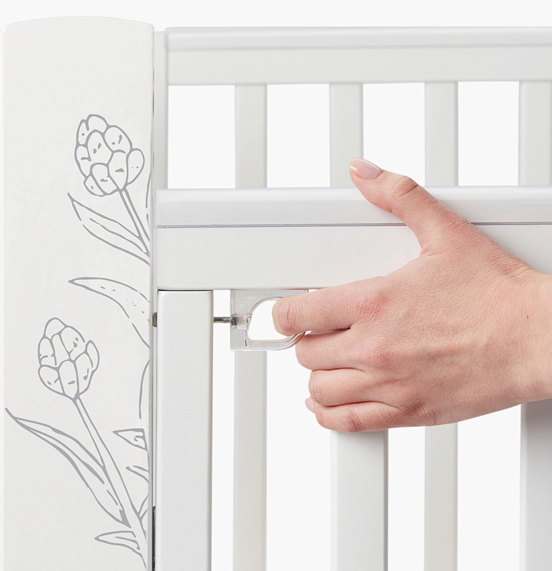 Бортики стенок со специальными накладками для защиты малыша в период прорезывания зубов.