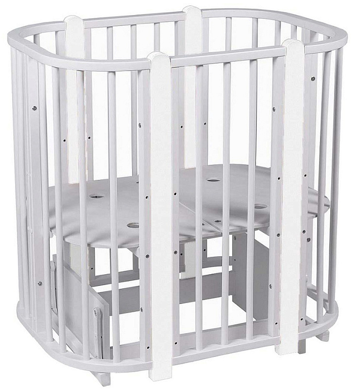 Современная кроватка необычной овальной формы для ребенка с рождения до 3 лет. Уже доказано, что ребенок в первые месяцы после рождения лучше спит в небольшом ограниченном пространстве, там более уютно и спокойно. В этот период рекомендуем использовать колыбель. В дальнейшем кроватка трансформируется в полноценную овальную кроватку с закругленными углами. У кроватки простой, но очень красивый внешний вид. Она полностью безопасна для ребенка и не имеет острых углов. В комплекте с кроваткой идут колёса для удобного перемещения по комнате. Кроватка проходит в стандартный дверной проём.