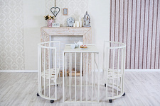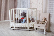 - С легкостью заменит уютную колыбельку для самых маленьких, впоследствии превратившись в кроватку для подросшего малыша или диванчик, игровой манеж, кресло со столиком.